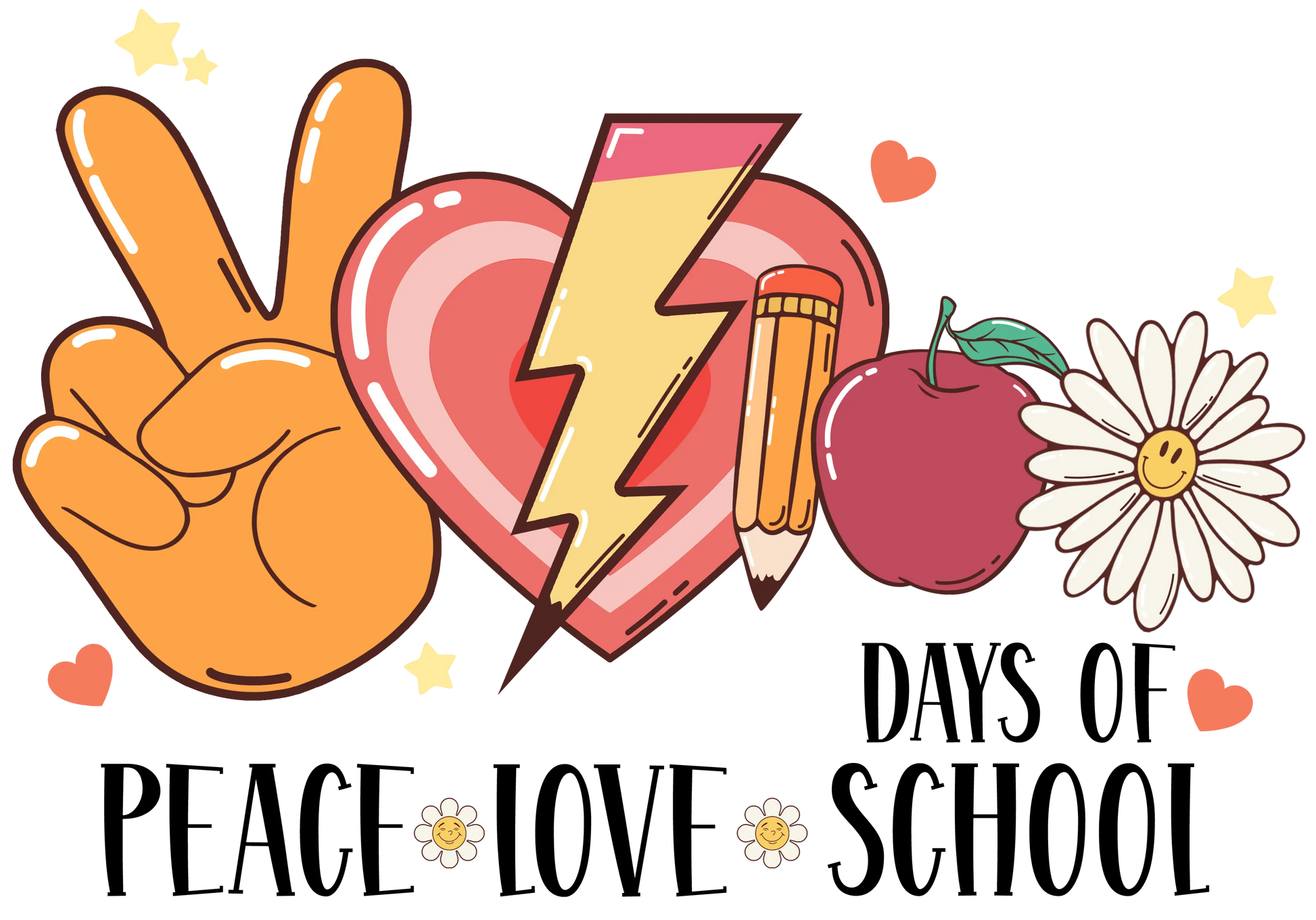 100 Days Of Peace Love School Design - DTF Ready To Press