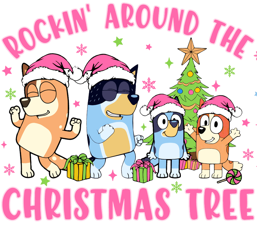 - Adorable Bluey Christmas Design: Featuring everyone's favorite playful pup, Bluey, surrounded by a whimsical Christmas tree.
