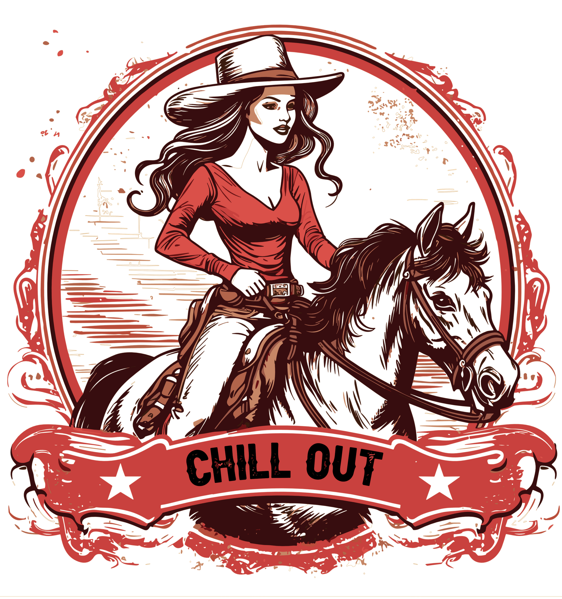 Get ready to rock the cowgirl style with ease and confidence. Order your Chill Out Cowgirl Design now and transform your wardrobe with a touch of western charm!