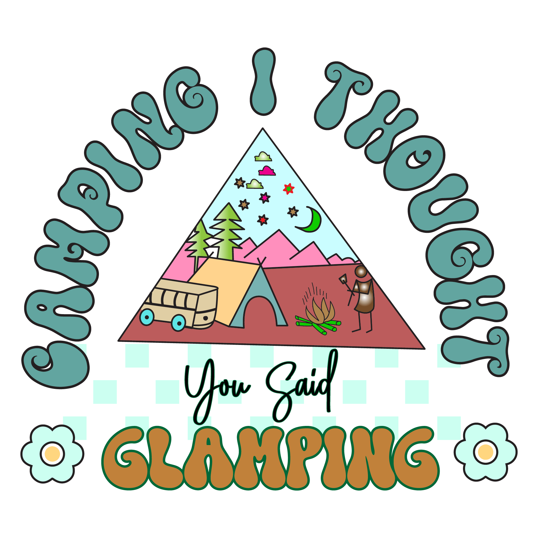 Bring a dash of humor to your camping gear with our exclusive Funny Camping Design that is ready to press! Perfect for personalizing your camping attire, bags, or other gear, this design is sure to bring a smile to your face and those around you.
