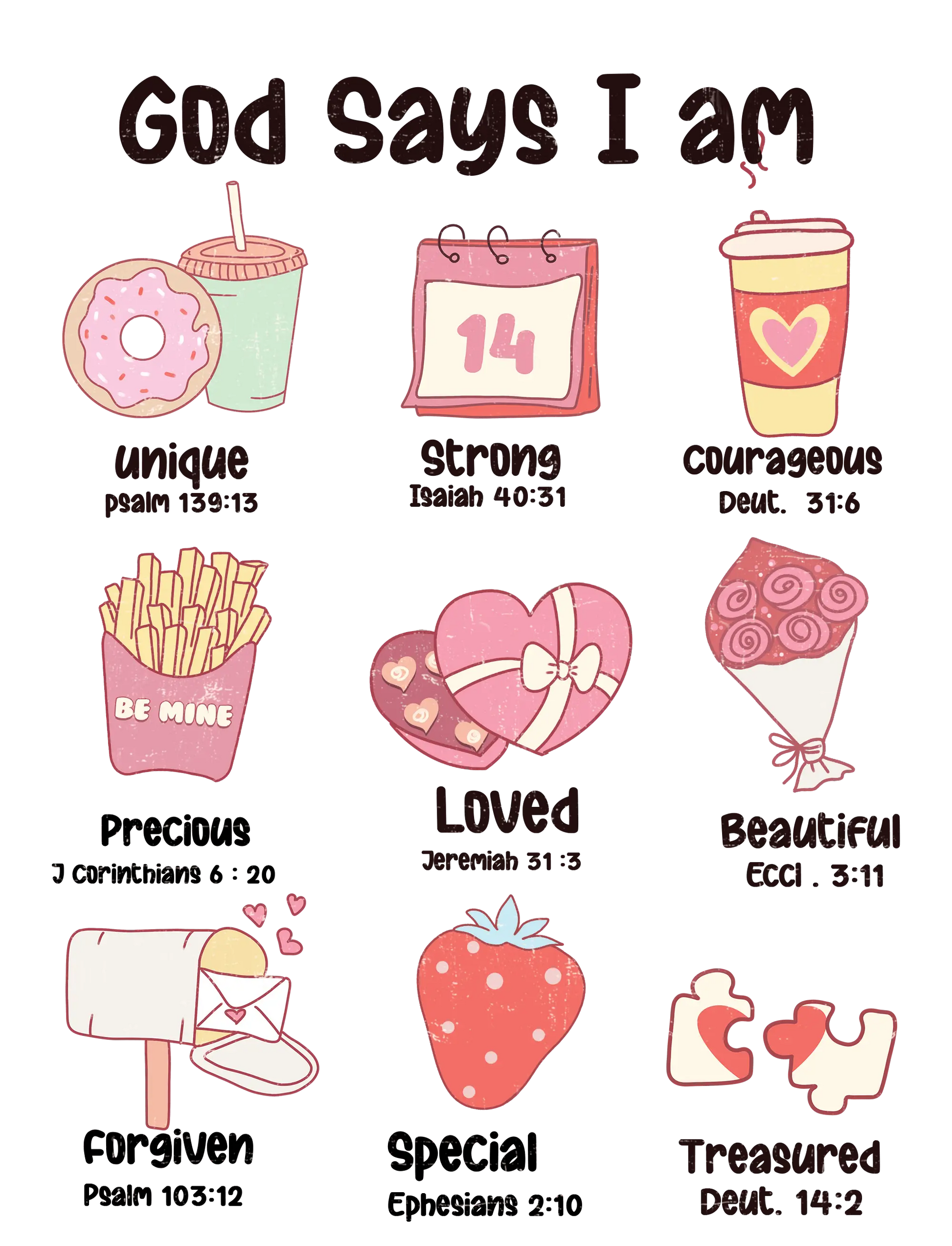 Make this Valentine's Day extra special with a design that not only looks beautiful but also carries a powerful message. Our "God Says I Am" DTF Ready to Press design is perfect for creating cherished gifts or personal keepsakes that speak of love and faith.