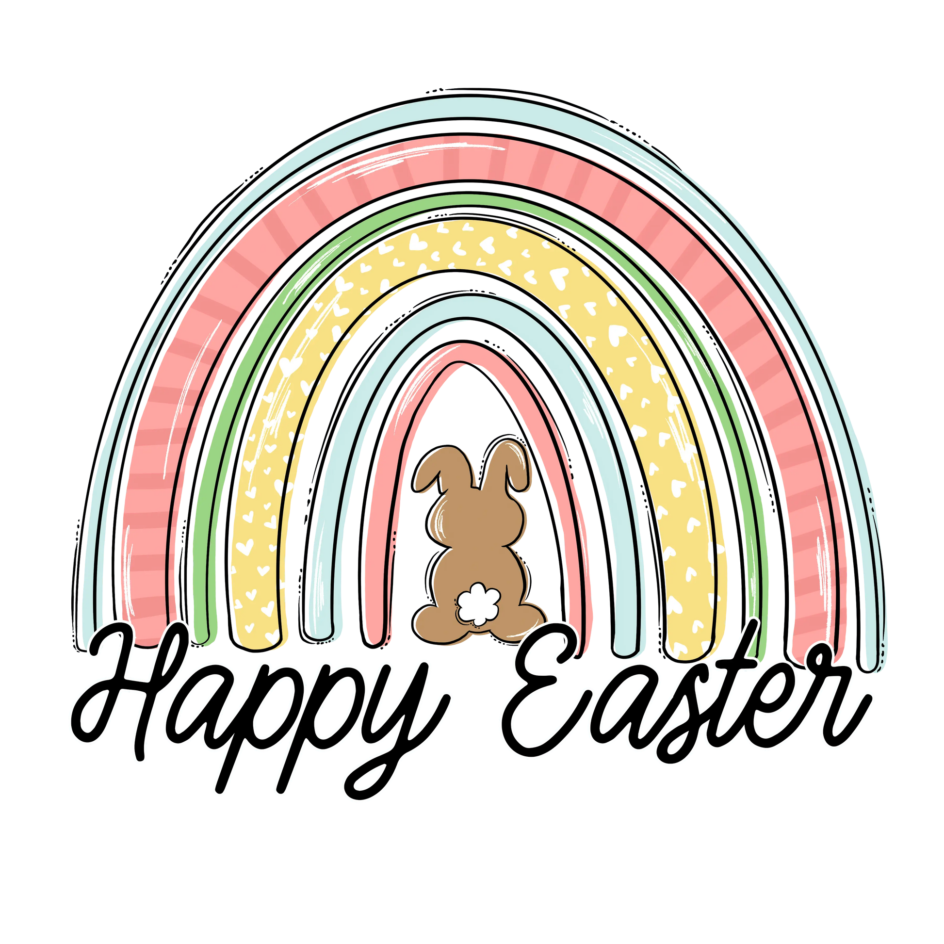 Celebrate the joy of Easter with our delightful Happy Easter Bunny Rainbow Design. Perfect for adding a touch of color and happiness to your apparel, this design is sure to bring a smile to everyone's face.