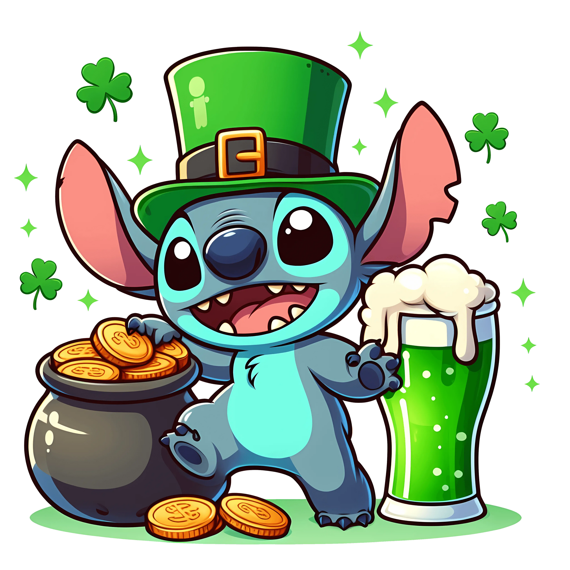 Choose the sizes you need and effortlessly add some festive fun to your collection with our Lilo & Stitch Saint Patty Luck Charm Design. Perfect for personal use or as a gift for fellow fans!