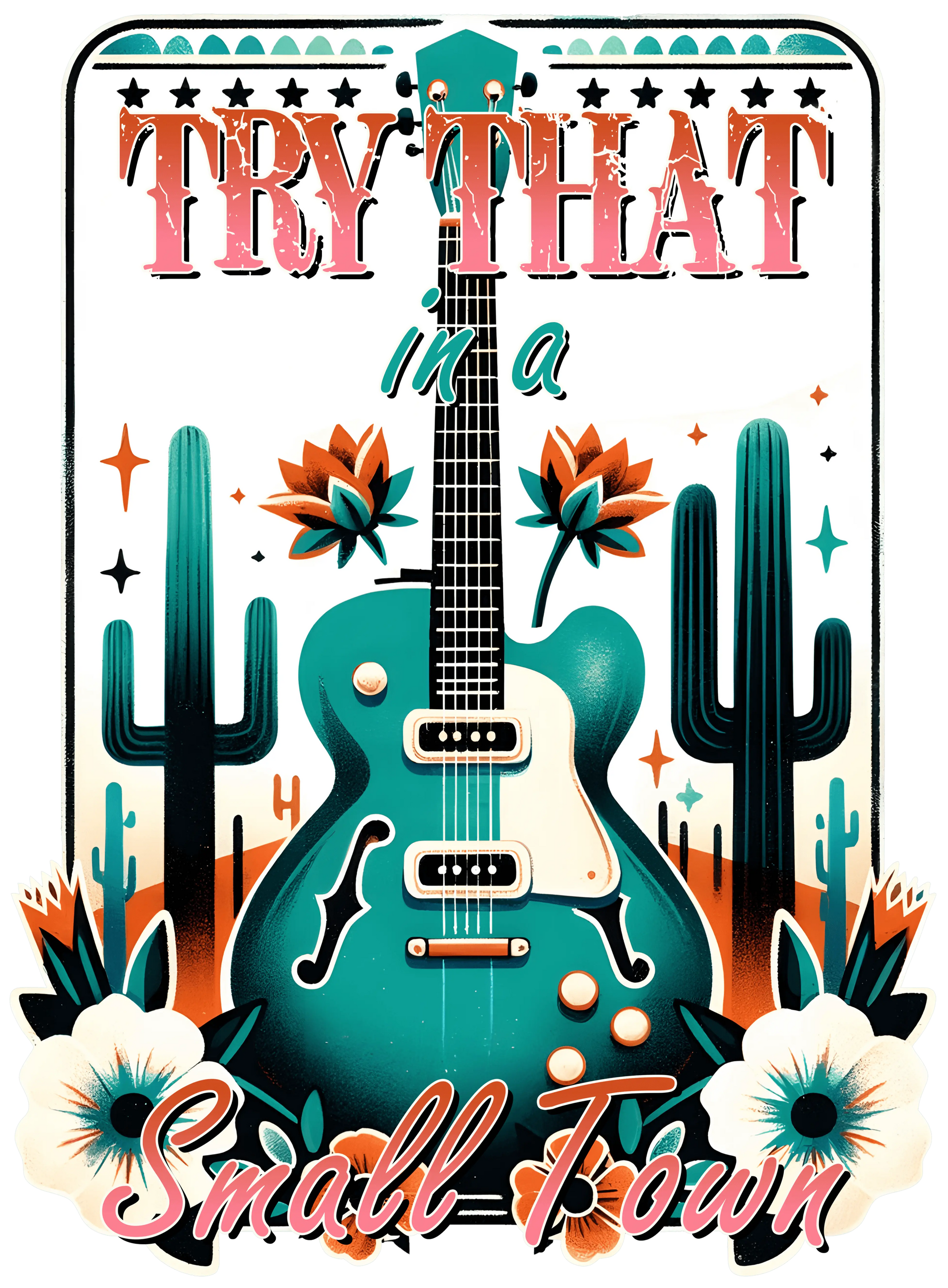 Transform your apparel into a statement piece with our "Try That In A Small Town" Western Design, DTF (Direct to Film) Ready To Press transfer. Perfect for small-town enthusiasts, country music fans, and anyone who loves a rustic, Western aesthetic.