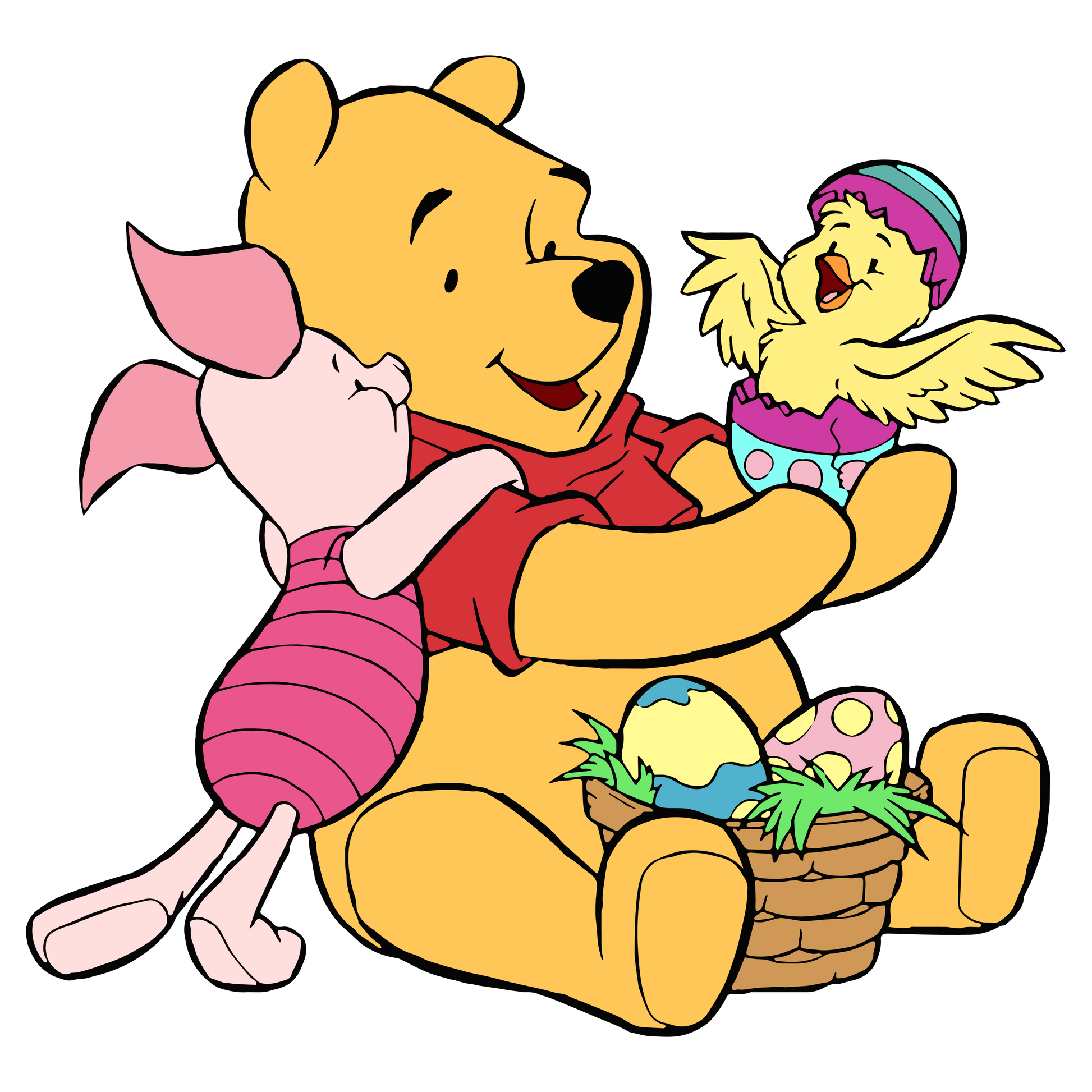 - Adorable Easter-themed design featuring Winnie The Pooh and Piglet